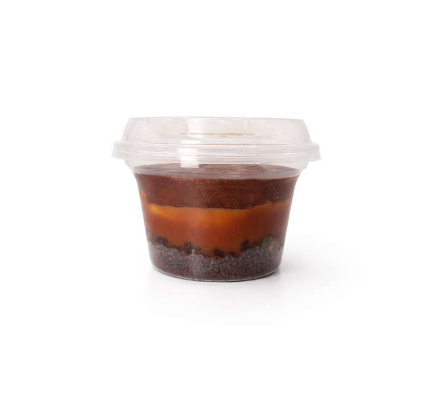 Шоколадний ганаш, карамель, банонове пюре, шоколадно-пісочна крихта.