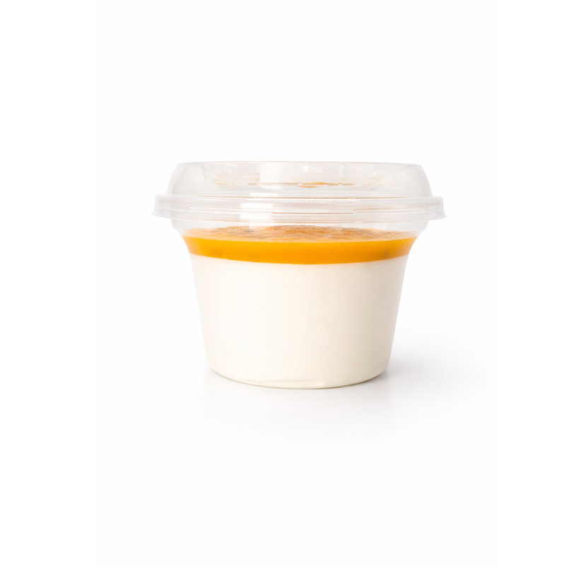 Вершковий крем з сиру маскарпоне під маракуєвим пюре.